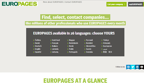 EUROPAGES 欧洲推广寻找新的海外商业合作伙伴;接触25个活跃行业的100多万欧洲买家;在超过3000多万个来自200个以上国家的专业商业伙伴面前曝光(70%来自欧洲)...欧洲黄页(www.Europages.com)是欧洲最专业的B2B搜索引擎和最大的采购商务平台,它以专业的企业信息分类和精准的搜索结果展示为商家提供网络营销服务。 自82年推出市场以来,就成为欧洲37个国家的1500万企业采购的必备工具,每个月有400万采购人士在这个网站上搜索供应商和商业合作伙伴,其中绝大部分是决策层人员。为了便于采购商查询,Europages中的企业是按极其详细的名录分类,比通常使用的工业名录精确得多,它分为: 26个专业领域 700个主要种类 3500个专业种类 25种语言版本:法文、英文、德文、意大利文、西班牙文、荷兰文、瑞典文、丹麦文、芬兰文、匈牙利文、波兰文、葡萄牙文、斯洛文尼亚文、土耳其文、希腊文、俄文、挪威文、罗马尼亚文、爱沙尼亚文、捷克文、立陶宛文、拉脱维亚文、保加利亚文、中文(繁体/简体)和阿拉伯文。 |